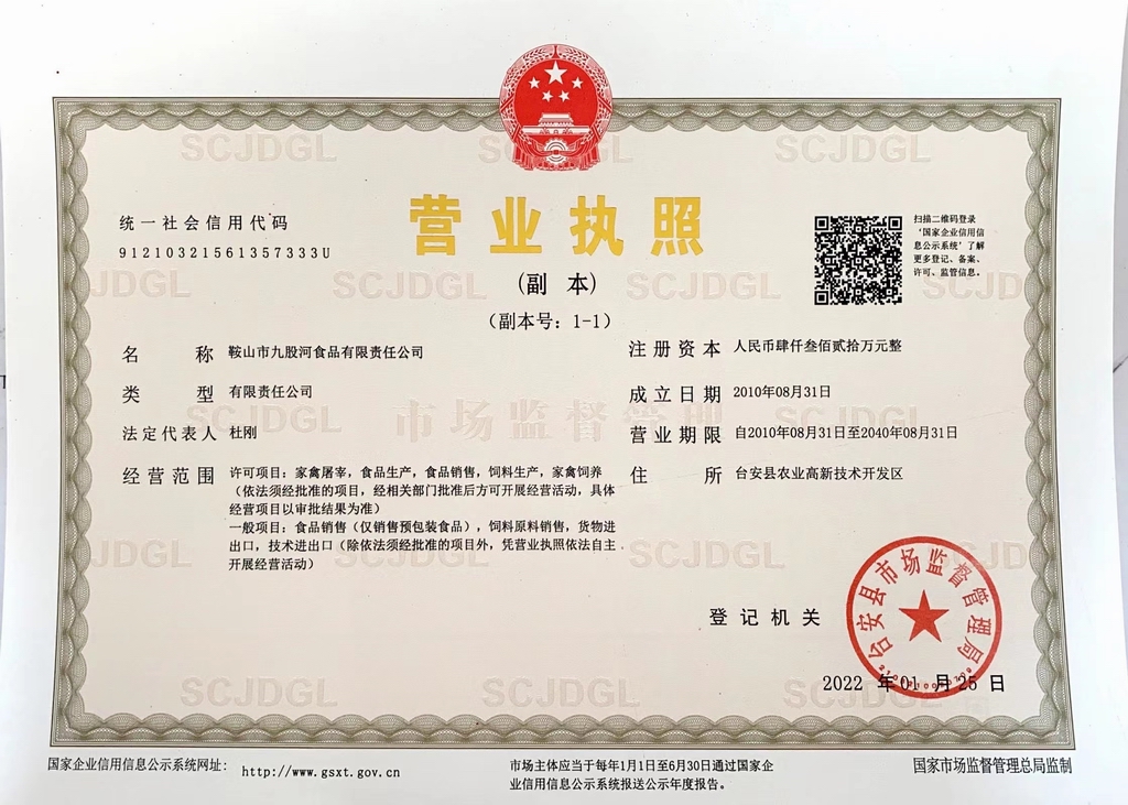 1997年丨九股河誕生于遼寧臺安,成立臺安縣九股河農(nóng)業(yè)發(fā)展有限公司2003年丨九股河走進錦州市,在凌海成立凌海九股河食品有限公司2008年丨成立凌海九股河飼料有限公司2010年丨九股河與禾豐合作后,成立鞍山市九股河食品有限責任公司,從此,禾豐九股河走進了高速發(fā)展之路2011年丨繼續(xù)在遼西闊步,成立葫蘆島九股河食品有限公司同年,臺安縣九股河農(nóng)業(yè)發(fā)展有限公司養(yǎng)殖部成立,按下規(guī)模化籠養(yǎng)小區(qū)建設(shè)的快進鍵2
